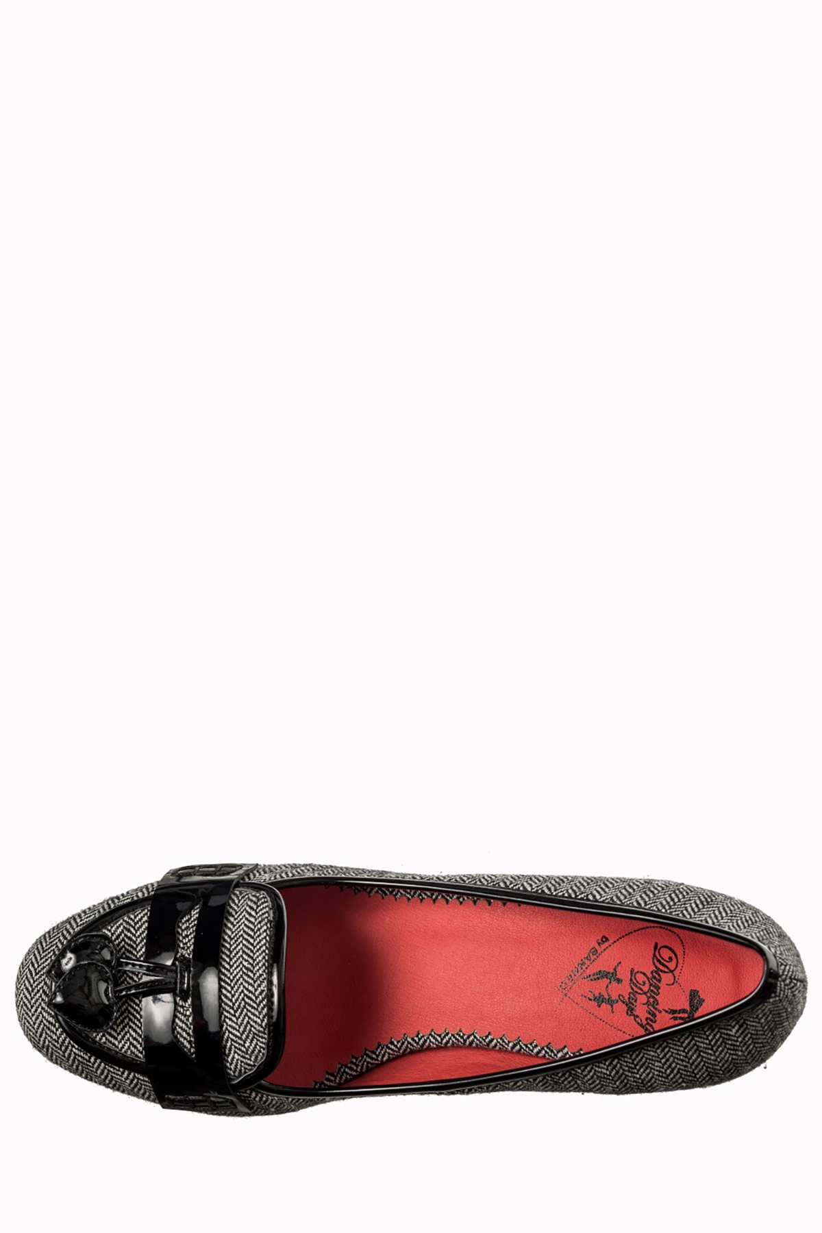 Μαύρα tweed γοβάκια με λουστρίνι λεπτομέρεια μπροστά, charm με καρδούλες στο επάνω μέρος, στρογγυλή μύτη και τετράγωνο τακούνι, άνετα και κομψά για να συνοδεύσουν ένα σύγχρονο ή ένα vintage inspired look!