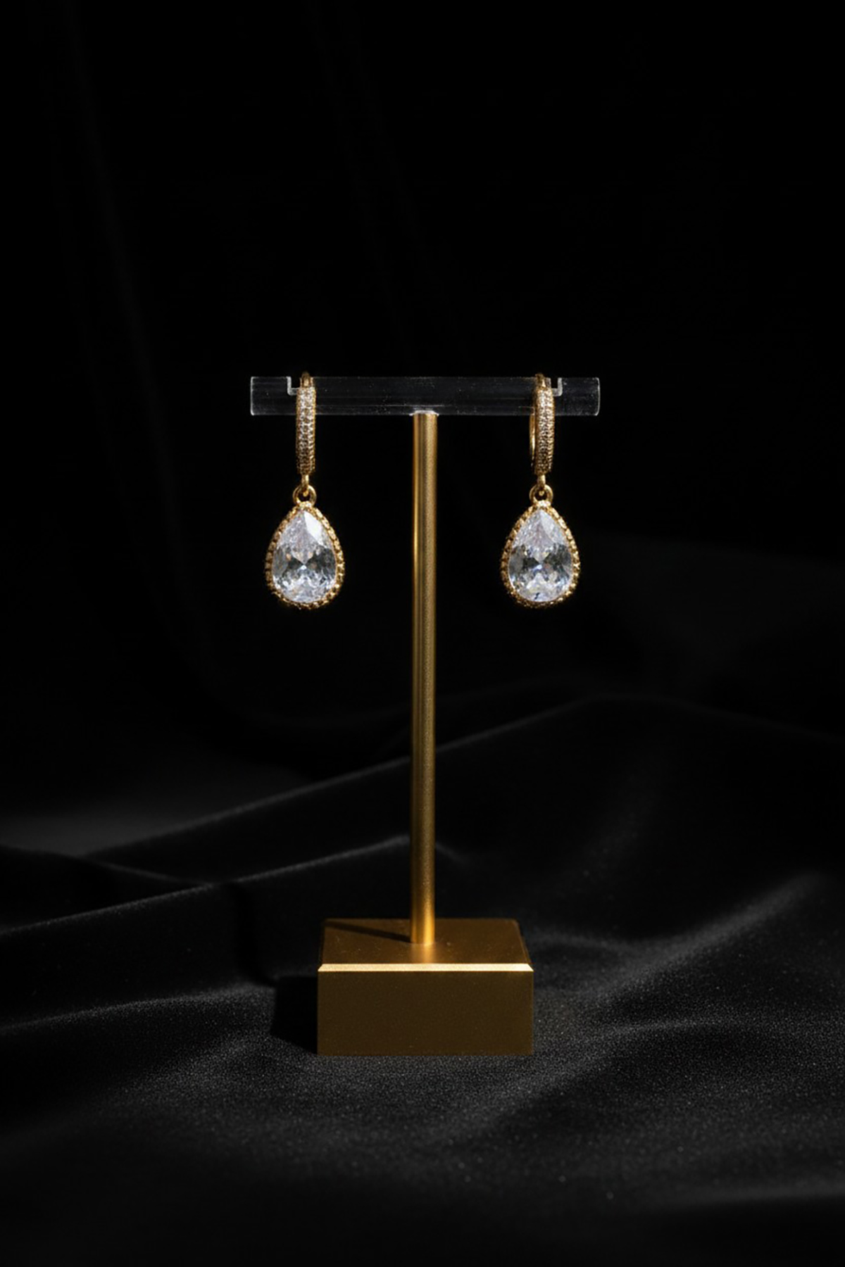 • Σχεδιασμός: Κρίκοι με pavé ζιργκόν και κρεμαστό μοτίφ σε σχήμα σταγόνας.