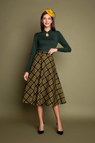 Ψηλόμεση πουά κλος φούστα, μέχρι το γόνατο, με τσέπες και φερμουάρ πίσω, για να δημιουργήσετε ένα ρετρό look για όλες τις ώρες!