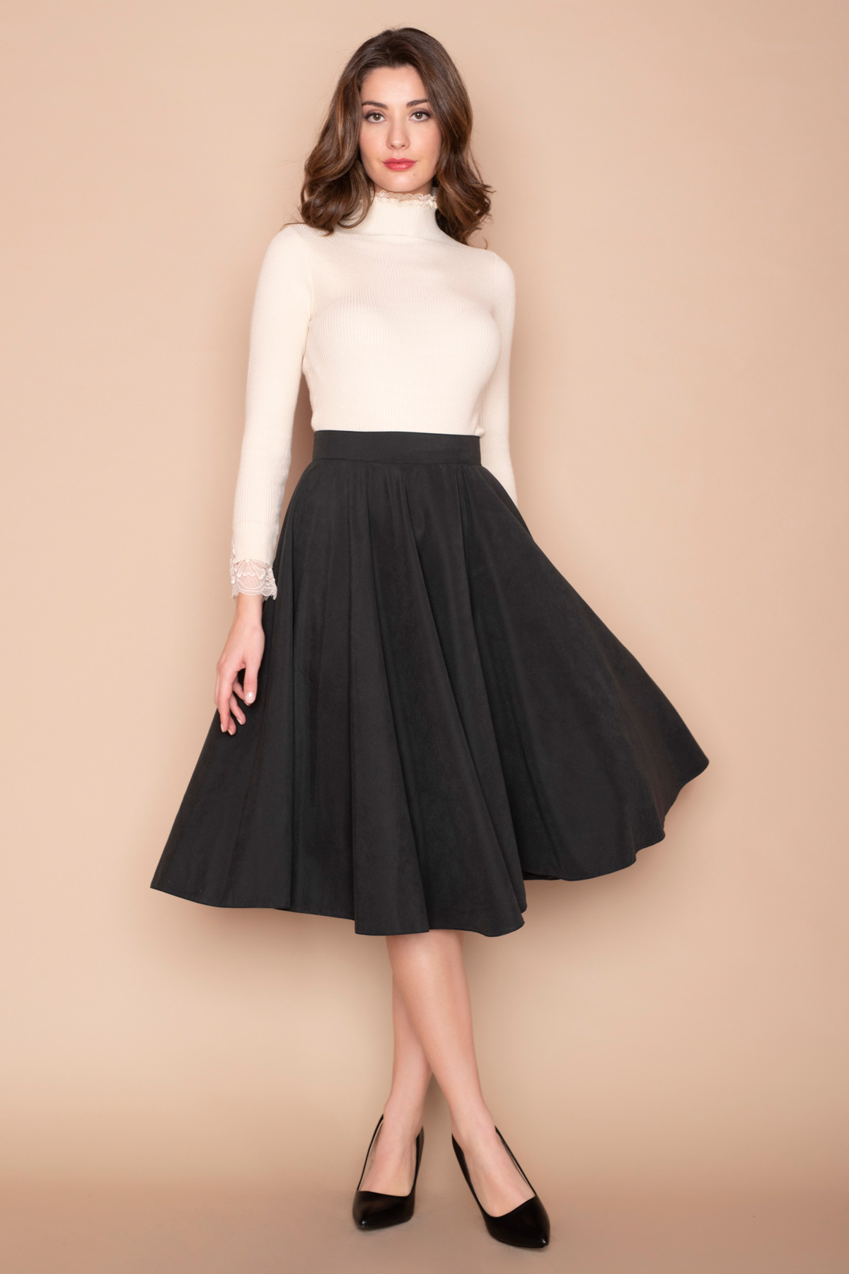 Μίντι ψηλόμεση κλος φούστα σε μαύρο χρώμα για να δημιουργήσετε ένα ρετρό look για όλες τις ώρες!