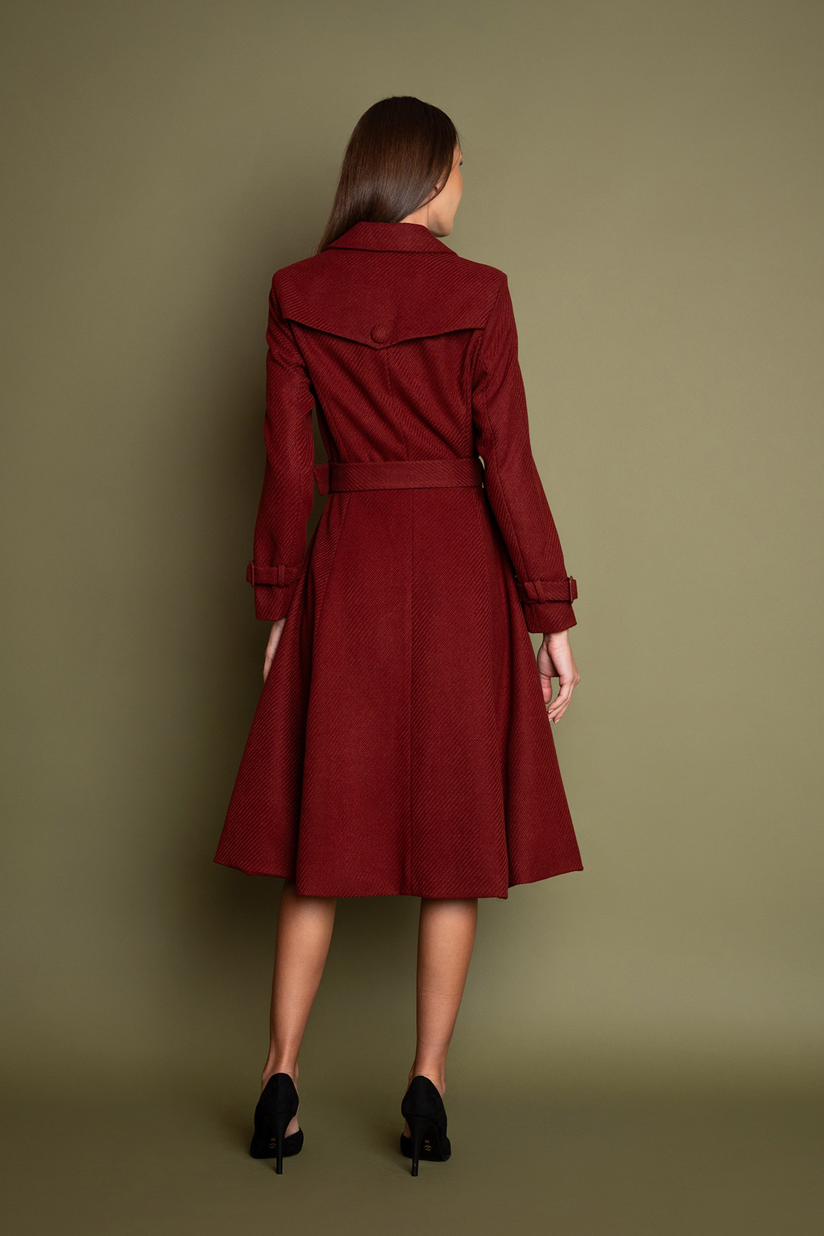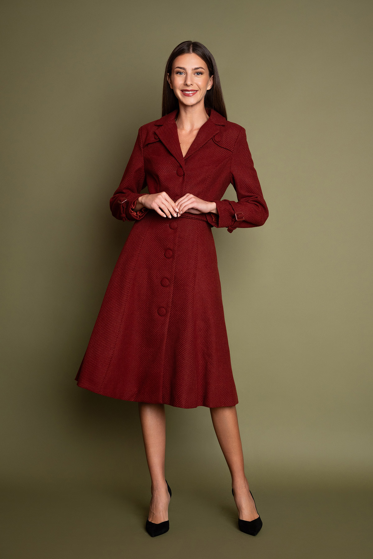 Vintage παλτό από υπέροχο ύφασμα σε χρώμα terracotta, σε κλος γραμμή. Ο κομψός γιακάς με το πέτο, μαζί με τα κουμπιά στο μπροστινό και πίσω μέρος του μπούστου, δίνουν στο παλτό ένα sophisticated style. Η μονή σειρά κουμπιών μπροστά, η ζώνη στη μέση, η κλος γραμμή, που αγκαλιάζει καλύτερα το φόρεμα με το φουρό, και οι τσέπες το κάνουν εκτός από εντυπωσιακό και πρακτικό! Ιδανικό παλτό για όλες τις ώρες, από το πρωί στη δουλειά μέχρι τις βραδινές σας βόλτες 🙂